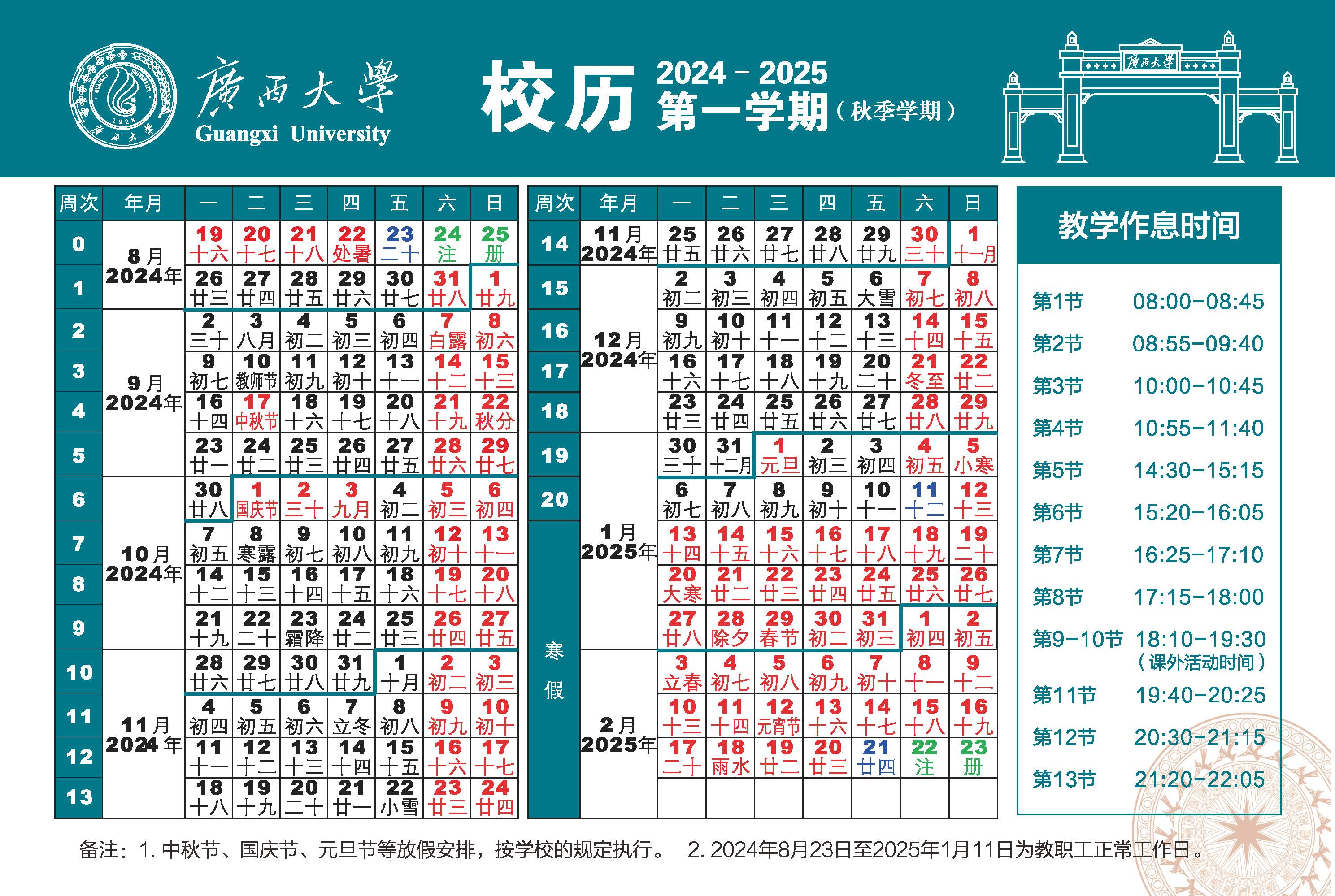 GXU Academic Calendar