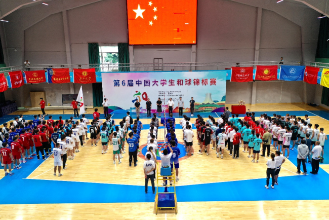Sponsored by China Student Sports Federation and organized by Guangxi University, the 6th China Uniball Tournament for College Students was held in the basketball hall of the west campus at Guangxi University from September 21st to 27th. Yu Wenjin, member of the Standing Committee of the CPC GXU Committee and Vice President of Guangxi University, attended the opening ceremony and announced the commencement of the tournament. Nearly 200 team leaders, coaches and athletes of 21 teams hailing from 9 provinces, municipalities, and autonomous regions participated in the tournament which consisted of 3 groups: Group A (Sunshine Group), Group B (Higher Vocational College Group) and Group C (High-Level Group).