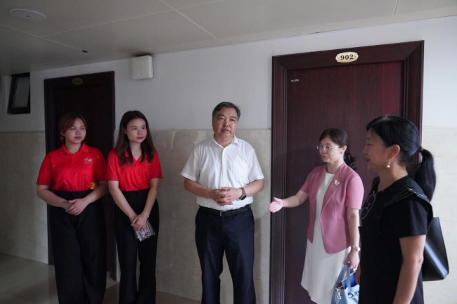 Phó hiệu trưởng Tiêu Kiến Trang thị sát ký túc xá du học sinh và trò chuyện với các sinh viên, bày tỏ sự chào đón chân thành. Ông ấy còn tìm hiểu về sự thích nghi của du học sinh với cuộc sống trong khuôn viên trường.