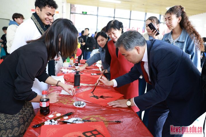ក្នុងនាមតំណាងឲ្យសាកលវិទ្យាល័យGXU លោក Xiao Jianzhuang បានថ្លែងអំណរគុណយ៉ាងជ្រាលជ្រៅ និងជូនពរឆ្នាំថ្មីដល់គ្រូបរទេស និងនិស្សិតអន្តរជាតិដែលចូលរួមក្នុងព្រឹត្តិការណ៍ផ្ទាល់ ថែមទាំងធ្វើការសម្តែងនូវការដឹងគុណចំពោះការខិតខំប្រឹងប្រែង និងការរួមចំណែកជាវិជ្ជមានរបស់ពួកគេ។ លោកសង្ឃឹមថា តាមរយៈព្រឹត្តិការណ៍នេះ លោកគ្រូអ្នកគ្រូបរទេស និងនិស្សិតអន្តរជាតិអាចទទួលបានបរិយាកាសនៃពិធីបុណ្យនិទាឃរដូវចិន ស្គាល់ពីទំនៀមទម្លាប់ប្រពៃណីចិន ដូច្នេះហើយបានបង្កើនចំណងមិត្តភាព និងការយល់ដឹងរវាងគ្នាទៅវិញទៅមក។