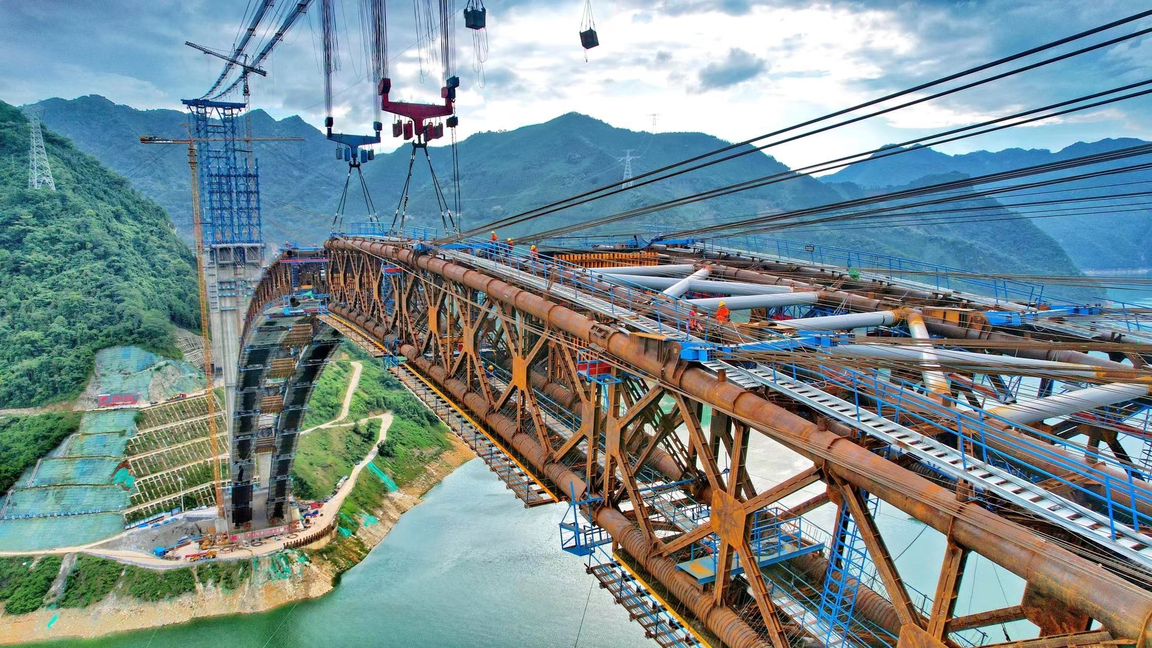 天峨龙滩特大桥主桥拱桁实现高精度合龙。