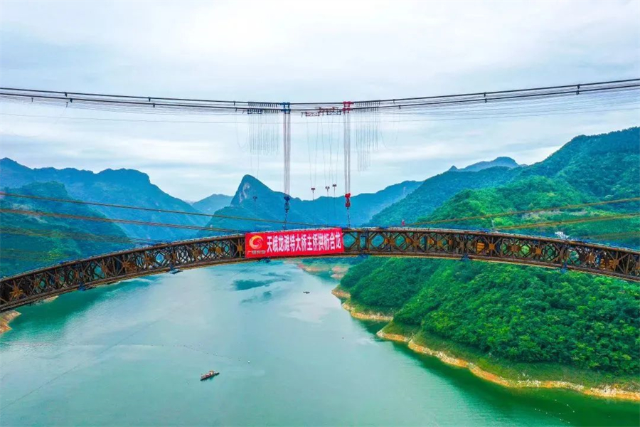 6月6日,在建世界最大跨径拱桥——南丹至天峨下老高速公路天峨龙滩特大桥主桥拱桁实现高精度合龙。中国工程院院士郑皆连、自治区政协副主席王乃学、河池市委书记秦春成出席合龙仪式。王乃学宣布大桥主桥拱桁合龙。