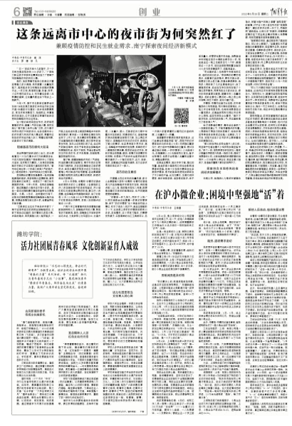 “‘五一’时还只有十几家摊子,才一个月就发展到现在的1000多家了。”广西电力职业技术学院学生覃娟见证了广西南宁市阳峰路夜市的突然火爆。