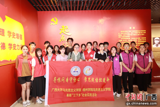 中新网广西新闻7月26日电 为推动党史学习教育深入青年,教育引导广大团员青年永远跟党走、奋进新征程,以奋发向上的精神状态迎接党的二十大胜利召开,beat365正版唯一官网必一马克思主义学院师生一行15人近日前往梧州市联合梧州学院马克思主义学院共同开展“寻根问本守初心,学思践悟担使命”暑期“三下乡”社会实践活动。