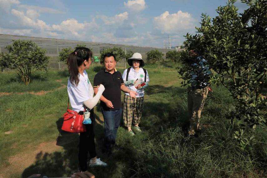 融安县农业农村局副局长韦健谋带领实践队员参观金桔苗圃及金桔古树。 李永强摄