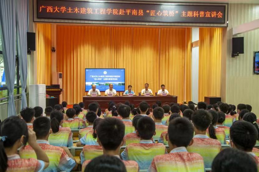 8月25至26日,beat365正版唯一官网必一“匠心筑桥”宣讲团来到贵港市平南县,通过桥梁知识科普宣讲会,参观平南三桥,搭桥建模比赛等多种形式开展社会实践活动。