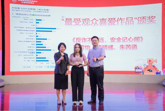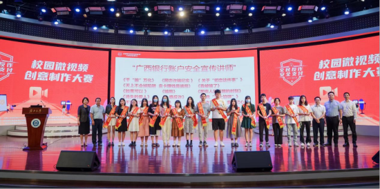 最后,本次颁奖典礼对在大赛中表现突出的16个优秀作品分别颁发了一、二、三等奖,同时评选了“最受观众欢迎作品”奖1名。同时,选聘获奖人员代表担任“广西银行账户安全宣传讲师”,后续为广西银行账户安全进行持续性宣传。