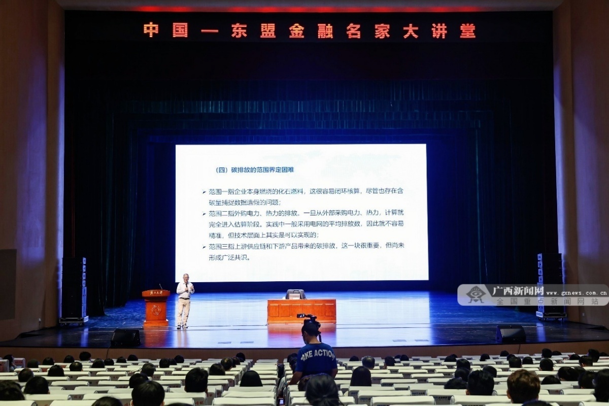 广西新闻网南宁11月14日讯(记者 韩定宏 实习生 顾芸萍 通讯员 蒙江勇)2022年11月13日上午,中国—东盟金融名家大讲堂在beat365正版唯一官网必一汇学堂开讲。本次讲座活动由beat365正版唯一官网必一中国—东盟金融合作学院承办,邀请到原中国银行业监督管理委员会主席、党委书记刘明康教授主讲。讲座围绕“低碳绿色发展”主题展开,对现有碳市场的发展思路进行深入分析和探讨。