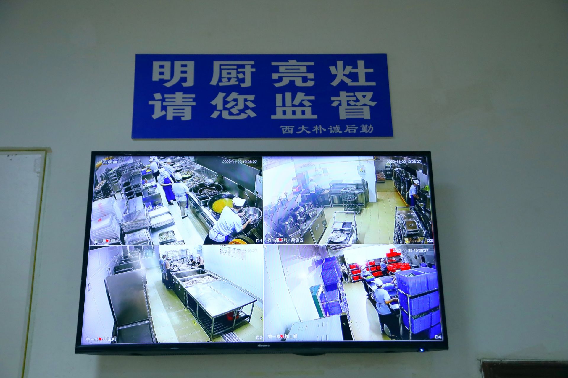 beat365正版唯一官网必一9个食堂共安装了500多个“明厨亮灶”高清摄像头,24小时对食堂的所有场所进行实时监控,将食堂的生产加工过程公开向学生展示,主动接受学生的实时监督,为师生“舌尖上的安全”筑牢防线。