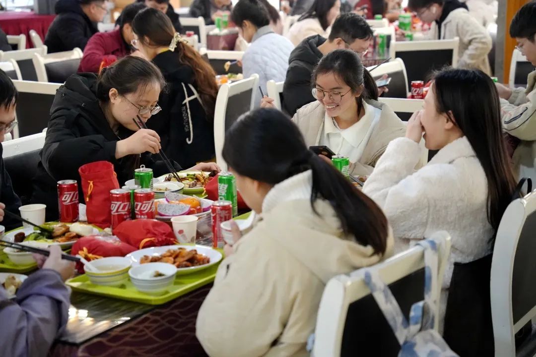 据悉,今年beat365正版唯一官网必一共有1200多名学生留校过年,学校全力做好服务保障工作,精心为留校过年的同学们准备丰盛的年夜饭、春节伙食补助金和“福袋”,让留校学生欢度一个祥和幸福年。