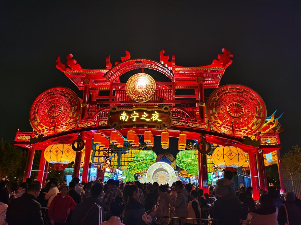“我们以打造‘夜经济’为抓手,以民族文化展示为载体,建设了这个商文旅融合夜经济项目,让市民和游客在这里感受城市文化与民族文化、本土文化和东南亚风情的交融。”广西旅发置业集团董事长江波说,“南宁之夜”自1月14日开街以来热度不减,已有超200万人次入街游玩,其中春节假期日均接待量12.9万人次。截至目前,街区内总消费额超2200万元,夜游文旅集聚效应明显。
