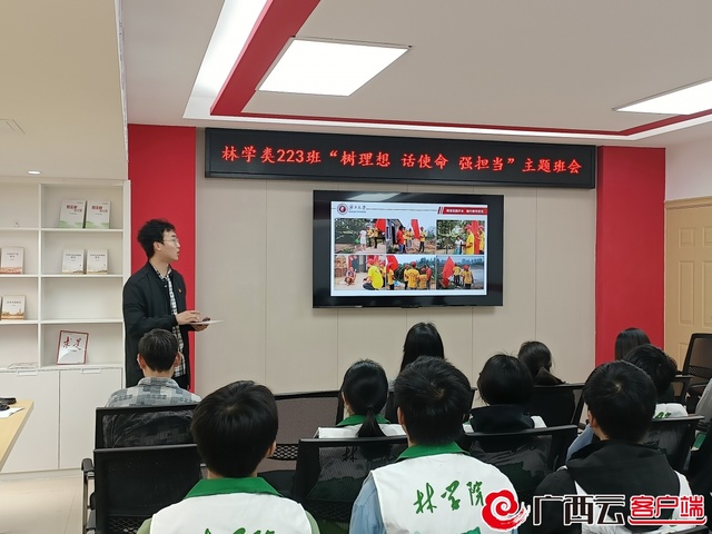 3月5日上午,林学院林学类223班在东30栋学生宿舍园多功能活动室区召开“树理想、话使命、强担当”主题班会。第十六届全国“大学生年度人物”入围奖获得者生态学专业2022级研究生吴中华、“全国优秀共青团员”获得者风景园林专业2020级研究生马朝阳在会上分享了自己以所学专业知识助力脱贫攻坚的经历和开展志愿服务的经历,畅谈了对做“有理想、敢担当、能吃苦、肯奋斗”新时代好青年的认识,号召大家认真学习党的二十大精神,主动提升专业本领,以所学知识赴祖国乡村振兴的“青春之约”,为中华民族复兴和美丽中国建设奉献青春力量。