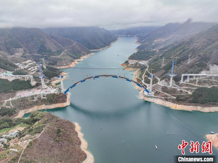 据悉,天峨龙滩特大桥位于广西河池市天峨县龙滩大坝上游6公里处,是南丹至天峨下老高速公路控制性工程。大桥全长2488.55米,主桥为上承式单跨600米劲性骨架混凝土拱桥。天峨龙滩特大桥建成后将世界拱桥带入600米级时代,成为新“世界第一拱”。该项目预计在今年年底建成通车。(完)