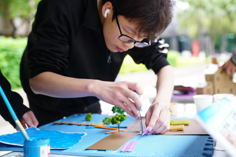 活动现场,植物标本制作的同学们对自己挑选出的植物精心修剪,并细致地完成标本固定;微观生态瓶制作小组充分发挥想象力和创造力,共同创作出可运行的生态瓶;花卉设计参赛同学认真选花、剪接、搭配、包装,很快便设计包装出精美的花束;在动植物及岩石矿物标本的辨别中,同学们变身“植物医生”,通过辨认形状、颜色、状态等特征“诊断”出植物所缺少的元素。