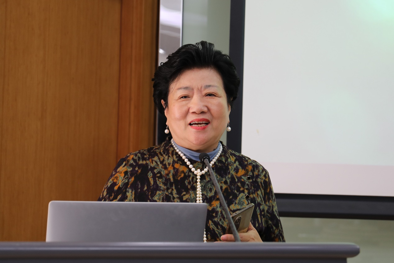 (图为中宣部退休干部詹安玲作主题演讲)