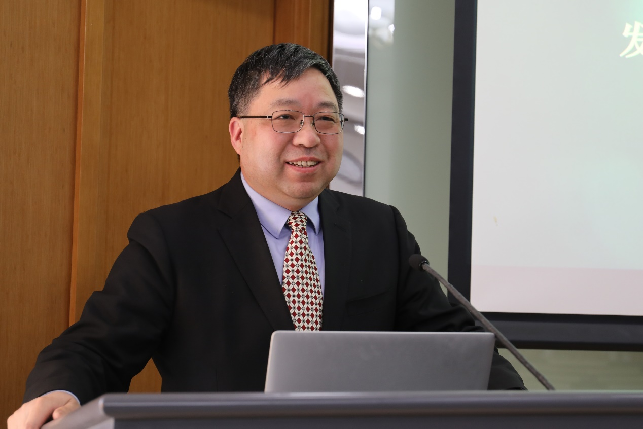 (图为中国国际民间组织合作促进会名誉理事长黄浩明教授作主题演讲)