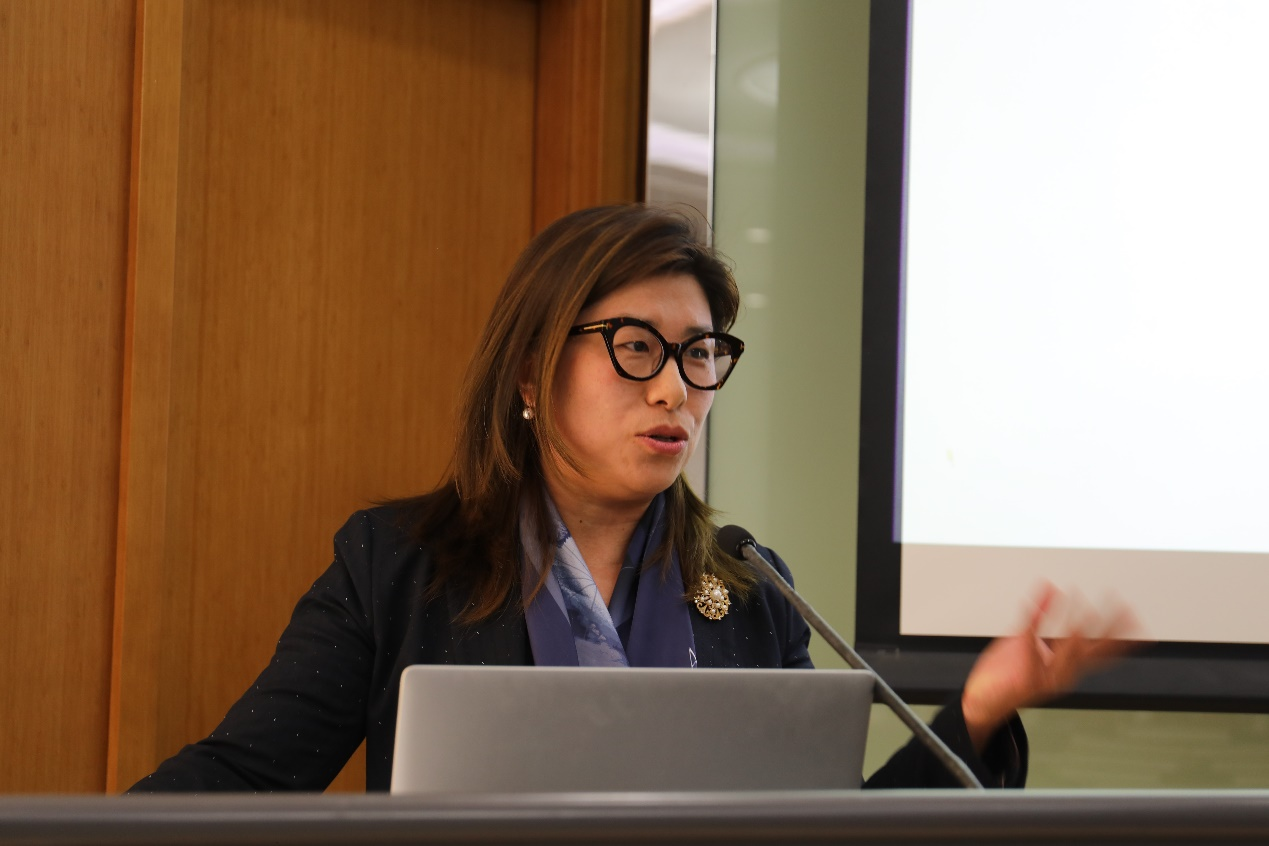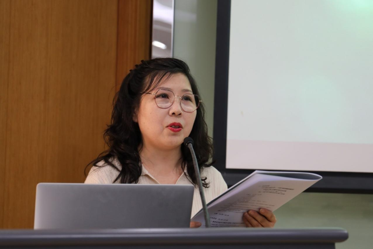 (图为中原气候传播研究所所长祁晓霞主持大会研讨发言)