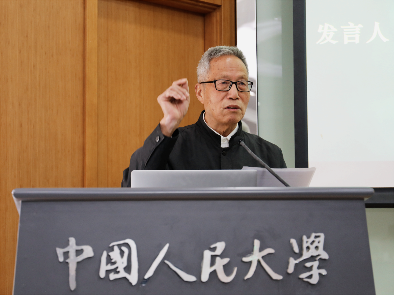 (图为中国人民大学新闻学院教授黄河发言)