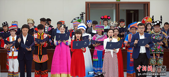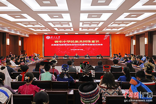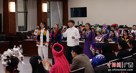全校26个学院的100余名师生代表在壮族“三月三”即将到来之际,身着民族盛装,欢聚一堂,共唱民族团结之歌、共享民族进步之果、共话民族工作之策。