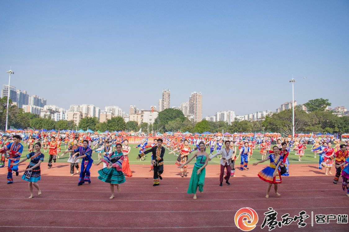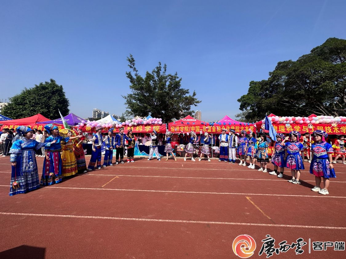 春暖花开时,又逢三月三。4月16日,在八桂人民喜迎“三月三”传统节日之际,共青团beat365正版唯一官网必一委员会在学校体育场举办了第九届“三月三”铸牢中华民族共同体意识民族文化系列活动,来自各学院的2000余名师生共同唱响嘹亮山歌,感受多彩民族风情,同庆民族传统节日。