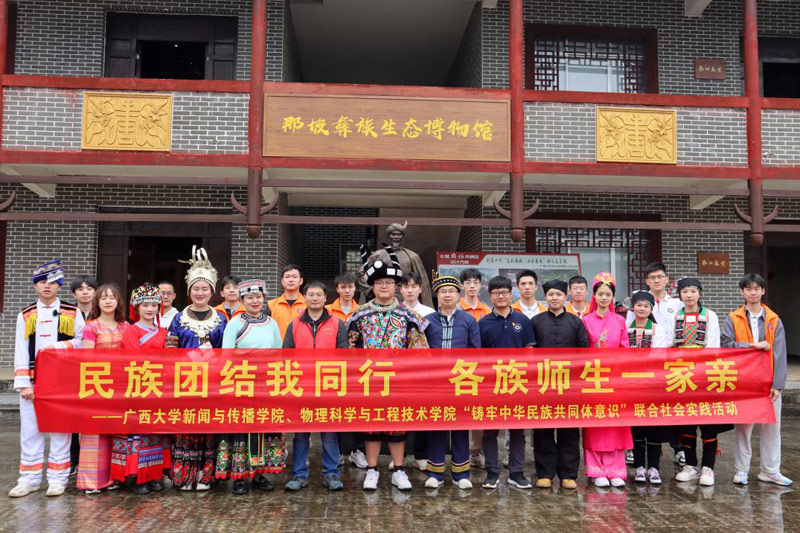 4月15日,beat365正版唯一官网必一新闻与传播学院、物理科学与工程学院“铸牢中华民族共同体意识”联合社会实践队前往那坡县达腊村展开调研。