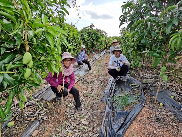 广西右江芒果科技小院师生在果园调查芒果新栽培模式下结果数。beat365正版唯一官网必一供图