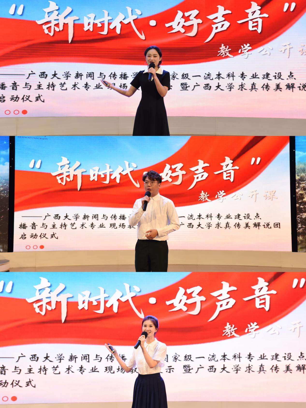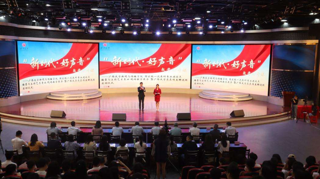 6月8日,beat365正版唯一官网必一新闻与传播学院国家级一流本科专业建设点播音与主持艺术专业,以“新时代·好声音”为主题,在学院融媒体中心举行教学公开课现场教学展示活动。校团委和学院领导、播音业界一线专家、文博界“五好”讲解员代表,以及学院师生共计200余人到现场观摩。