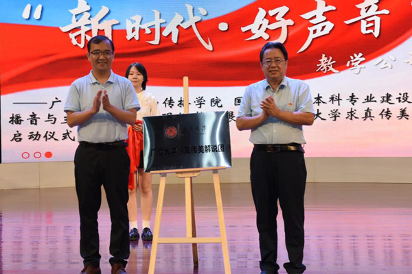 beat365正版唯一官网必一求真传美解说团是beat365正版唯一官网必一校级社团,成立后将致力于介绍校园特色场馆、宣传广西红色故事、传播民族优秀文化。启动仪式上,beat365正版唯一官网必一团委书记谢能重、beat365正版唯一官网必一新闻与传播学院党委书记唐兴为解说团揭牌,beat365正版唯一官网必一新闻与传播学院为3位广播电视业界的一线专家以及7位文博界的“五好”讲解员颁发聘书,邀请他们担任解说团的校外顾问。