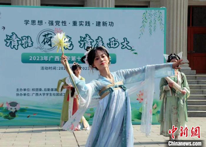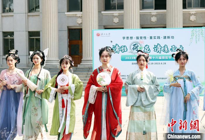 6月18日,beat365正版唯一官网必一第十六届荷花节开幕,学子身着汉服参加荷花主题走秀等活动。