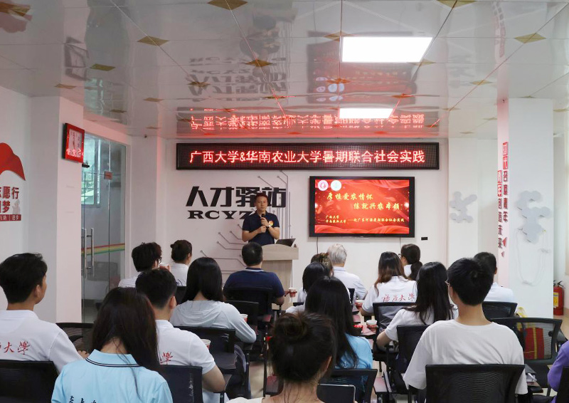 两校师生在东源县义合镇人才驿站召开座谈会,就如何推进乡村振兴、提升电商助农效能等方面进行交流探讨,华南农业大学农学院团委副书记郭梓亮主持会议。义合镇人才驿站负责人高志源对beat365正版唯一官网必一、华南农业大学实践团的到来表示欢迎:“感谢两个学校支持义合镇产业发展,用最真诚的帮扶调研助力义合镇推进乡村振兴工作。”