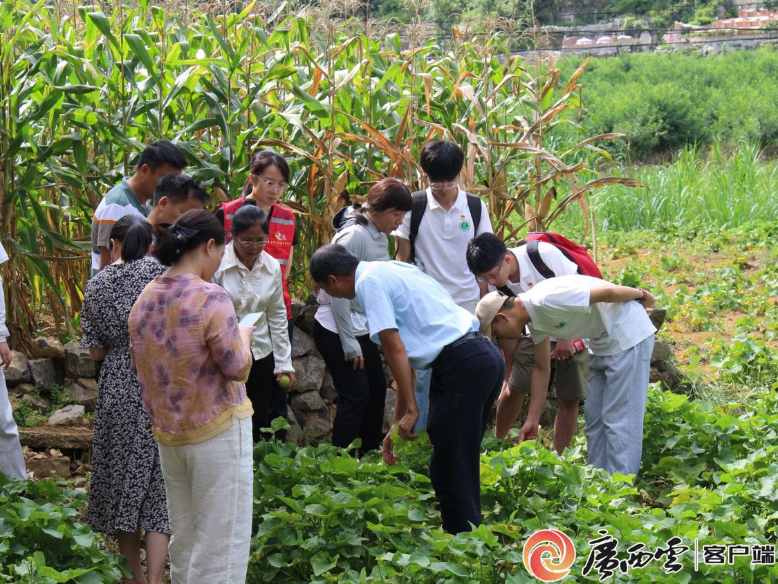 实践队查看古棠村佛手瓜苗长势。beat365正版唯一官网必一农学院供图