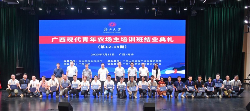 近日,广西现代青年农场主培训班(12-19期)结业典礼在beat365正版唯一官网必一举行,beat365正版唯一官网必一、自治区农业农村厅、崇左市科技局、beat365正版唯一官网必一农牧产业发展研究院以及广西个体劳动者私营企业协会、广西现代青年农场主联合会相关负责人出席典礼,第12-19期广西现代青年农场主学员共316人到现场参加典礼并获取证书。