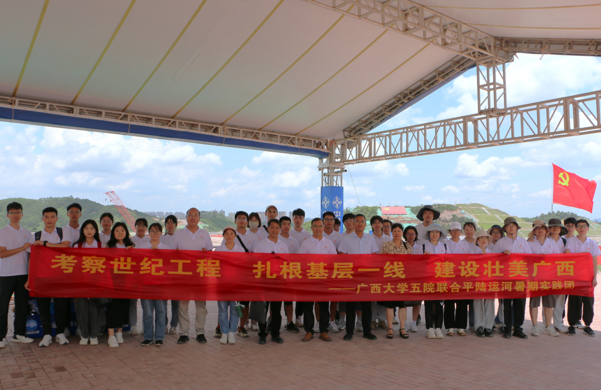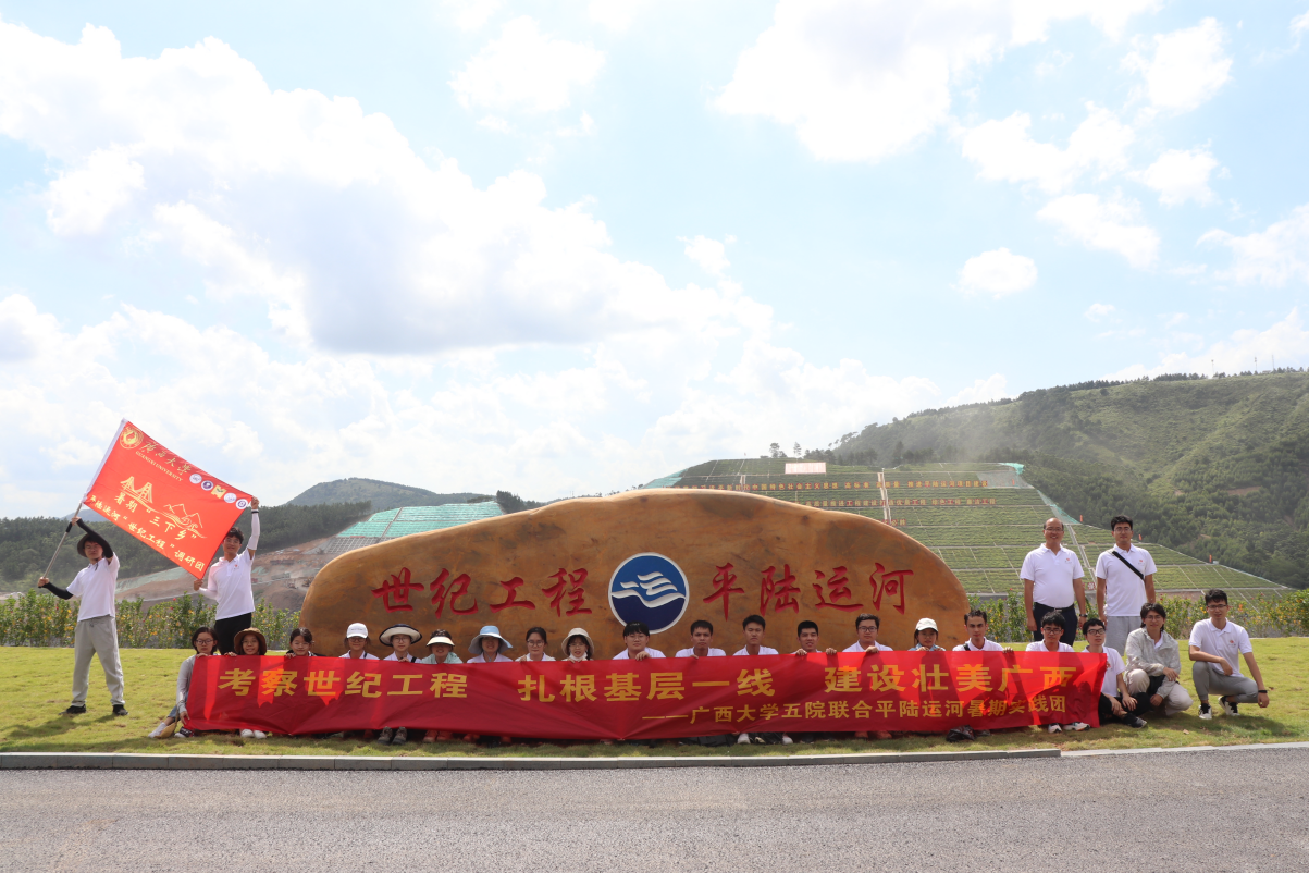 7月11日-14日,beat365正版唯一官网必一平陆运河暑期实践团赴平陆运河沿线,开展以“考察世纪工程,扎根基层一线,建设壮美广西”为主题的暑期“三下乡”社会实践调研活动,从平陆运河的起点——南宁横县平塘江口(1标段)行至钦州平陆运河入海口(15标段),以全面了解平陆运河世纪工程的历史意义、建设情况、生态保护计划,及西部陆海新通道建设对沿线发展的重要意义。