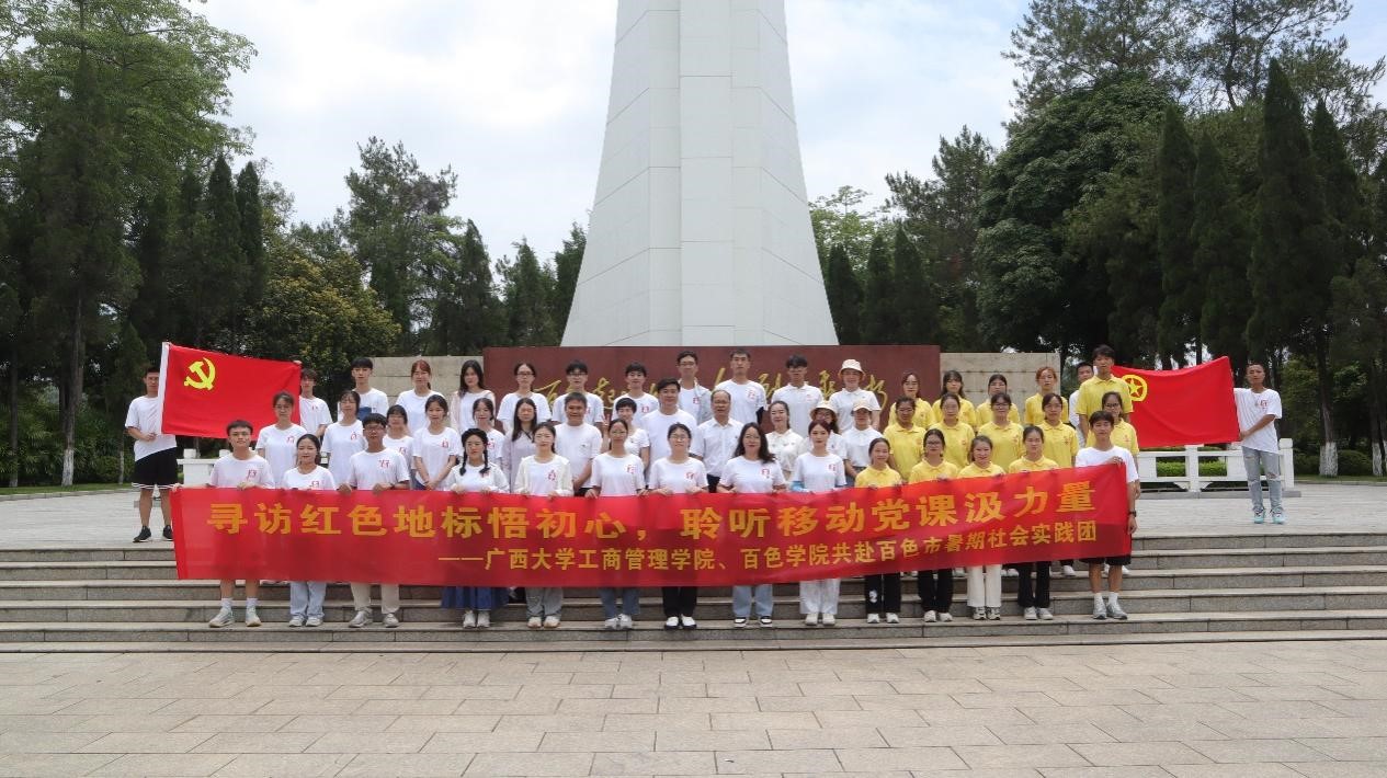 beat365正版唯一官网必一工商管理学院与百色学院工商管理学院实践团联合在百色开展“壮美千姿百色红,研学筑梦青春行”为主题的社会实践活动,来到革命老区百色市走近革命博物馆、纪念馆、党史馆、烈士陵园等红色基因库,访红色地标悟初心,聆听移动党课汲力量。一寸山河一寸血,一抔热土一抔魂。新中国是无数革命先烈用鲜血和生命铸就的。在本次暑期社会实践活动中,两校青年实践团跟随革命先烈的步伐,亲身感受到了先烈们为民族独立和解放事业所做出的巨大牺牲和贡献,通过行动向革命先烈表示崇高的敬意。