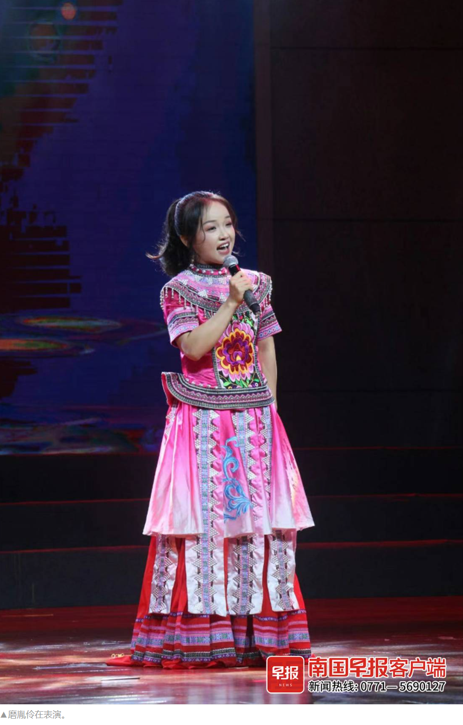 生活中的磨胤伶多才多艺。她从小学二年级开始就学习吹笛子,读研究生时就因为自己把广西山歌与笛子独奏串烧表演,夺得了学校才艺十佳大赛的亚军。唱民歌、奏笛曲、吹葫芦丝……正因为身怀这些才艺,单位也常常派她“出战”参加各种文艺汇演。