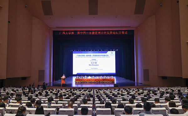 10月14至15日,beat365正版唯一官网必一第一届中国—东盟区域合作发展论坛在beat365正版唯一官网必一汇学堂举办,论坛主题为“中国—东盟:为了更好的未来”。论坛邀请了教育部中外语言交流合作中心,中共中央对外联络部,广西壮族自治区教育厅、科技厅、交通厅、水利厅等中央和自治区相关部门负责人,东盟国家驻邕总领事馆代表,以及400多名国内外专家学者参会。