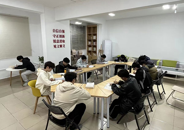 学生们正在宿舍楼栋里开设的24小时自习室学习 郑东摄