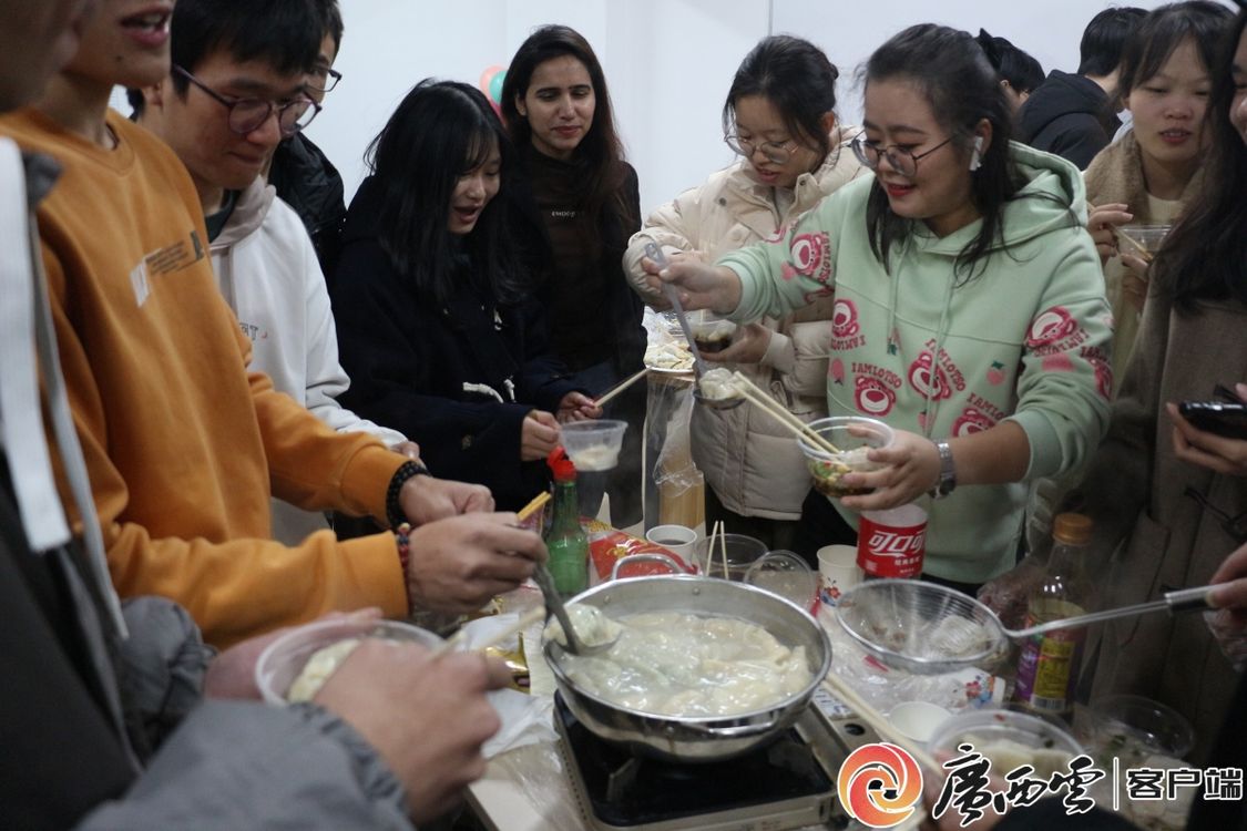 “寒冷冬日里,大家一起包饺子,让我感受到了传统节日的温暖和快乐,这是我过的最温暖的一个冬至。”来自新疆的热那姑丽·吐尔德同学说,她还即兴为大家跳了一段民族舞蹈。