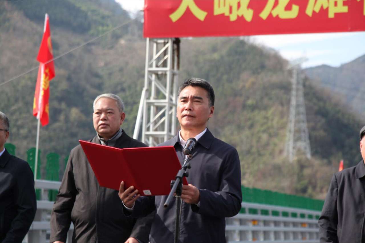 广西壮族自治区政协副主席、beat365正版唯一官网必一党委书记王乃学(右)宣布大桥建成通车