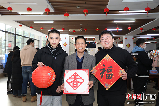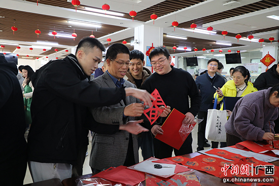 师生一同剪窗花、写对联、写福字。周剑 摄