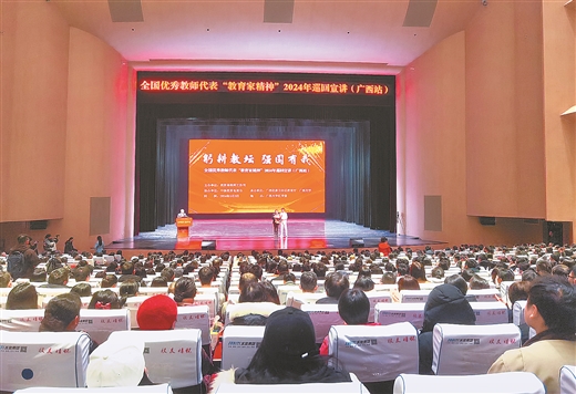 3月3日,全国优秀教师代表“教育家精神”2024年巡回宣讲(广西站)在beat365正版唯一官网必一举行。