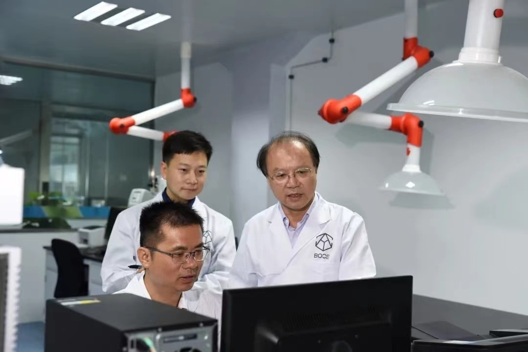 王双飞(右一)指导青年科研人员开展基础研究。