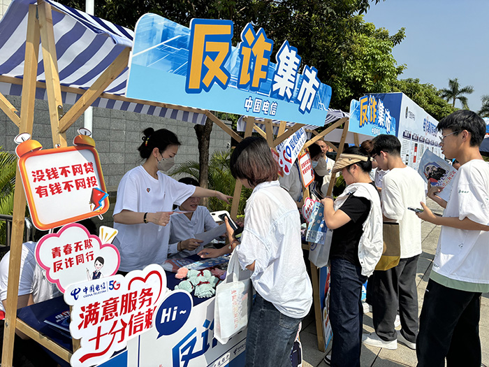当天,主会场内,自治区公安厅、beat365正版唯一官网必一等单位带来歌曲、魔术、舞蹈等形式多样的反诈节目,生动宣传防范电信诈骗知识。主会场外,举办了“反诈宣传集市”,现场设置反诈互动游戏区、典型案例宣传区等特色区域,让青少年在生动有趣的互动体验中学习反诈知识,增强防骗意识。