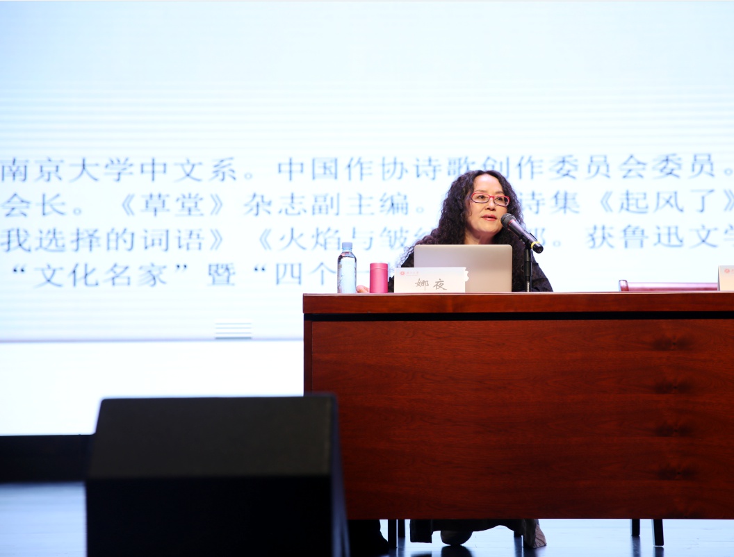 鲁迅文学奖获得者娜夜在授课。主办方供图