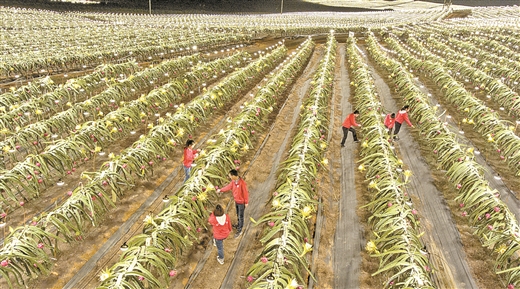 “良种+良法”让火龙果产业更红火。经过科技小院团队的科研攻关,“无刺红龙”火龙果新品种顺利落户,专家团队还研发出“火龙果夜间催花补光产期调节技术”等多项成果。受益于此项技术的广西金穗农业集团相关负责人给记者算了一笔账,仅补光技术每晚就可以节省2小时的开灯时间,每年节约电费约86万元。通过采用补光催花技术等方式,实现四季开花、多次挂果,火龙果一年可结果8—11批次,每年6月至第二年1月均有果上市。这项补光技术不仅用于金穗火龙果基地,更是通过协会成员惠及周边和海南,亩产量由3000多公斤提高到4000公斤,核心区丰产期亩产最高可达5000公斤。