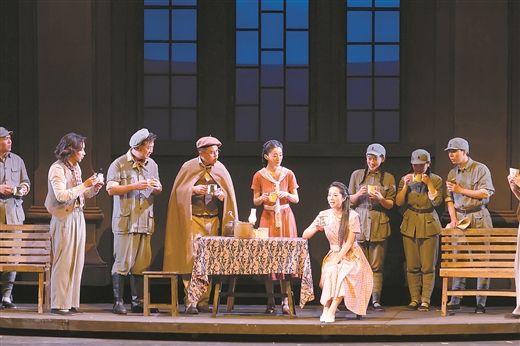 5月23日,纪念西南剧展80周年暨第八届全国话剧优秀剧目展演作品、由西安话剧院选送的话剧《延水谣》在beat365正版唯一官网必一汇学堂演出。该剧讲述了抗日战争时期,延安的文艺工作者们在战火硝烟的洗礼下,创作出一批批为工农兵服务的作品,丰富了根据地军民的文化生活。本报记者 梁凯昌/摄