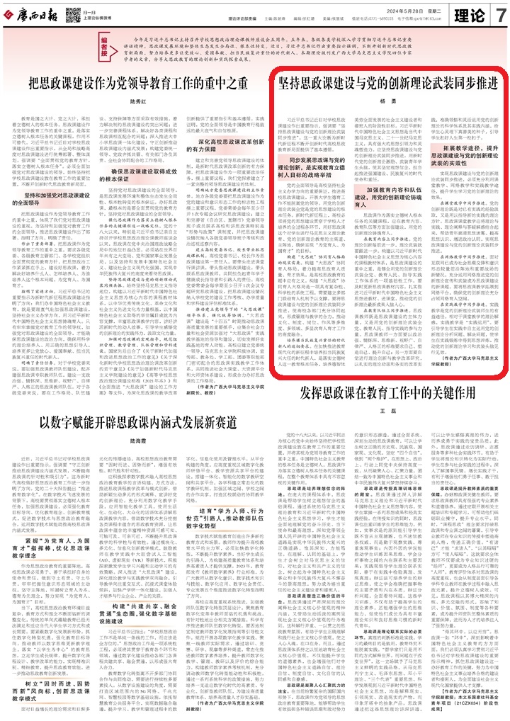 今年是习近平总书记主持召开学校思想政治理论课教师座谈会五周年。五年来,各级各类学校深入学习贯彻习近平总书记重要讲话精神,思政课发展环境和整体生态发生全局性、根本性转变。近日,习近平总书记作出重要指示强调,不断开创新时代思政教育新局面,努力培养更多让党放心、爱国奉献、担当民族复兴重任的时代新人。本期理论版刊发beat365正版唯一官网必一马克思主义学院四位专家学者的文章,分享大思政教育的理论创新和实践探索成果。