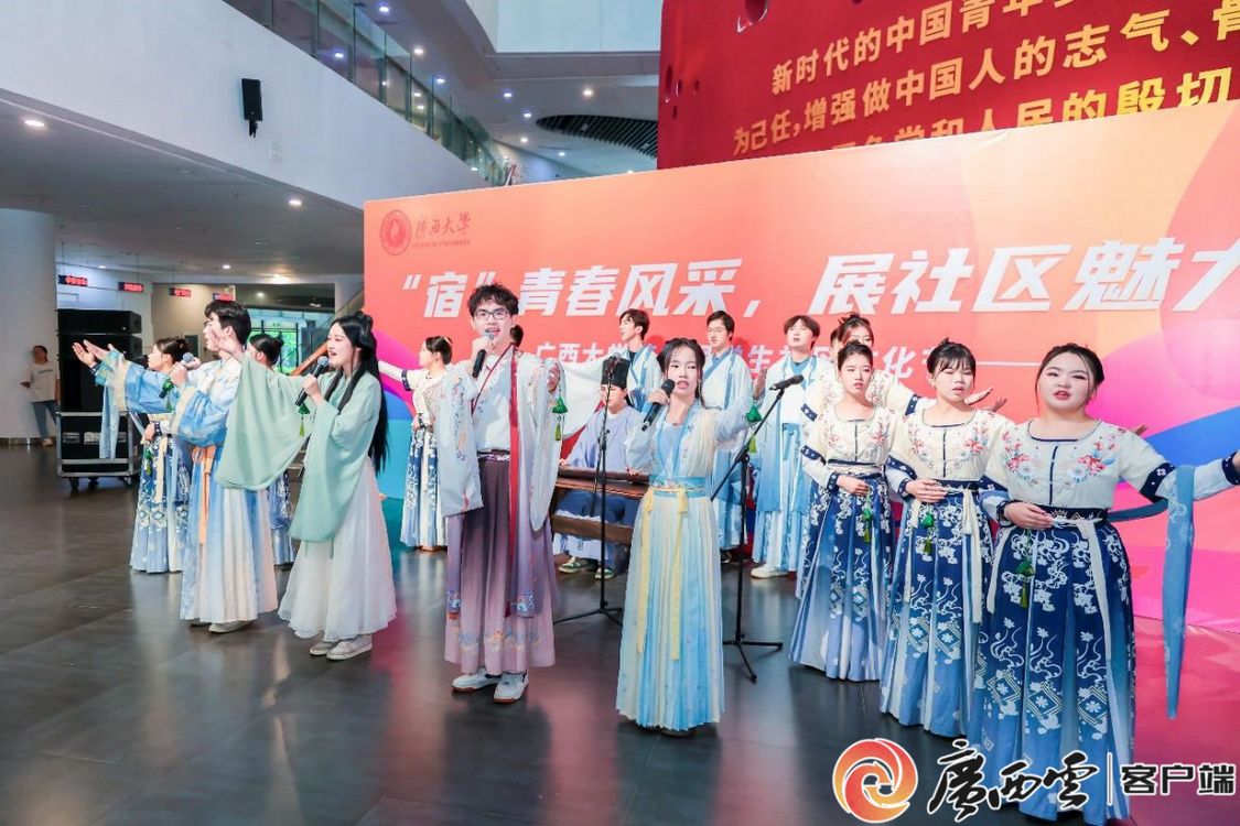 忽然,观众席中站起几位女生,她们唱着当红歌曲《上春山》穿越人群走上舞台,不少观众拿起手机拍摄视频。“今天原是平常一天,因为遇见你而不平凡”,一句歌词唱出了舍友间的美妙缘分,也将开幕式带入尾声。
