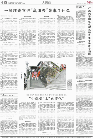 一开始,“00后话百年”系列理论宣讲精品课,注重发掘陈望道、李达等曾在beat365正版唯一官网必一任教、就读的与百年党史相关的校史人物奋斗故事,以及校园里的红色资源,希望通过理论宣讲的方式发挥思政教育的作用。后来,学校团委进一步延伸,把宣讲内容拓展到广西区情社情、新时代伟大成就,引导学生投身广西建设,到基层建功立业,为实现“第二个百年奋斗目标”担当作为。