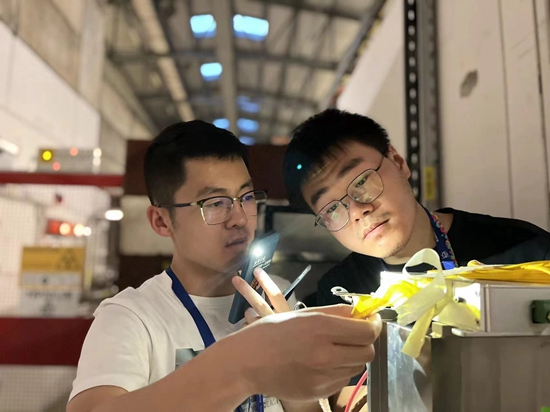 团队成员在欧洲核子研究中心进行穿越辐射探测器束流实验现场调试。谢文锦/摄